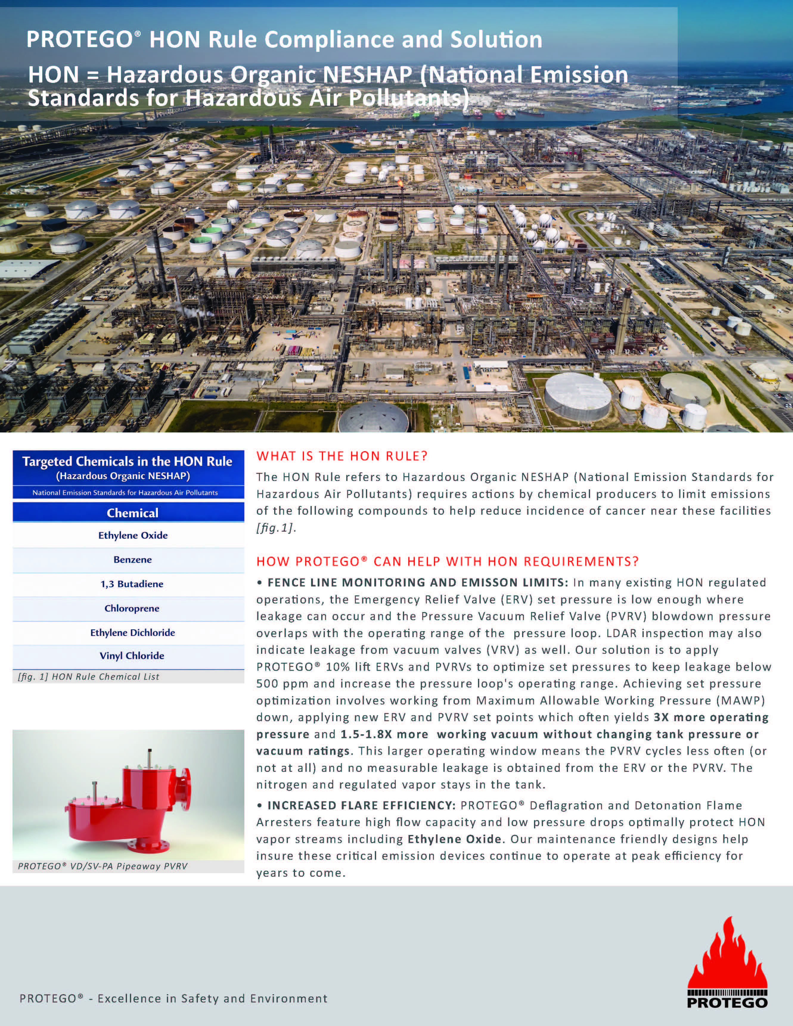 PROTEGO USA, Inc. assembles, manufactures, and sells Pressure Vacuum Vents up to 12“, Emergency Relief Vents up to 24“, and In-Line Flame Arresters up to 12“ (NEC B, C, D). We also offer repairs to all PROTEGO® models, replacement FLAMEFILTER® discs up to 24“, application engineering, and sales training.